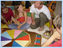 Über mich:Rund um die Person Theodor Feldner1967 erblickte ich in Hopfgarten, in Osttirol, das Licht der Welt, und erhielt den Namen Theodor.„Theodor“, stammt aus dem Griechischen. Und ebenso wie die Griechen, habe auch ich eine besondere Leidenschaft und Faszination zur Mathematik, Geometrie und Natur entwickelt. Nach meiner Schulzeit und der Matura ging ich auf Reisen, um die Vielfalt der Welt zu entdecken. In Südamerika kam ich mit der „Nichtdirektiven Pädagogik“, von Rebeca u. Mauricio Wild, in Kontakt. Das war für mich eine sehr tiefgehende Begegnung. Ihre Beschäftigung mit Piaget und Montessori waren für mich richtungweisend. Danach arbeitete ich drei Jahre in einem nichtdirektiven Kindergarten in Tirol, und anschließend 16 Jahre an nichtdirektiven, freien Schulen in Tirol und Niederösterreich und Wien. Und so entwickelte sich durch die tägliche Arbeit mit den Kindern, KollegInnen und Eltern sowie der Reflexion darüber mein jetziges Verständnis von Lernen und „Schule“. Seither gehe ich, neben meiner „Lehrertätigkeit“ und Kooperationen mit verschiedenen Schulen, meiner Seminartätigkeit zum Thema „Mathematik und Lernen“ nach. Ich mache Seminare in Österreich, Südtirol und Deutschland. So sehe ich LernenLernen mit Freude und die Entfaltung der Kreativität ist für mich nur in einer entspannten Umgebung möglich. Lernen ist von Innen gesteuert, hat seinen eigenen Rhythmus und passiert auf Freiwilligkeit. So werden durch eigene Erfahrungen Verständnisstrukturen aufgebaut. Meine Materialien und „Werkzeuge“Ich schätze das Montessori-Rechenmaterial sehr, habe viel Erfahrung damit gesammelt, z.b. mit dem goldene Perlenmaterial, Rechenrahmen, Abakus, Wurzelbrett, Bi-u. Trinomischen Würfel. Durch die intensive Beschäftigung mit dieser Art von Mathematik, sind neue Materialien entstanden, z.B. die Matheomatik-Arena. Eine völlig neue Dimension sind die großen, begehbaren Materialien, wie das Matheomatik-Tuch und der Matheomatik-Stern. Sehr wichtig für mich ist Bewegung, Jonglieren, Balancieren,… Mein TätigkeitsschwerpunkteGrundrechnungsarten - Bruchrechnen - Wurzelziehen - Geometrie - Kubikwurzel - Binomischer Lehrsatz - Algebra - Gleichungen - Vektoren - Goldener Schnitt - Funktionen- uvm.- Geschichte der Mathematik - Astronomie - Sonne Mond und Sterne - Philosophische Überlegungen(mit Kindern u. Erwachsenen) - Physik - usw.- Arbeit mit Naturmaterialien - Labyrinth - Pendel - Installationen - etc.- Jonglieren - Balancieren - Bewegen - Musik - Rhythmus - Gedächtnis - Spiele Erfinden - Visualisieren - Gaukeln. Meine LeistungsangeboteIch biete Vorträgen, Seminare und Workshops an, wo mit den Matheomatik-Materialien und Ideen gespielt werden kann. Ich komme auch an Schulen und arbeite mit den Kindern, LehrerInnen und Eltern. Ich biete Mathematische Erlebniswelten an, wo gearbeitet, gespielt, geforscht, Mathematik genossen werden kann. Meine ZielgruppenKinder und Jugendliche, LehrerInnen, KindergärtnerInnen, SozialarbeiterInnen, ErzieherInnen, interessierte Menschen, Eltern, Studenten. Mein Ansatz – ForschenDraußen in der Welt Mathematik finden, damit spielen, mich damit beschäftigen und neue Sichtweisen erschließen, - Sichtbarmachen von Gedanken und inneren Bewegungen, - Einfache Dinge beforschen und komplex mit Dingen in Verbindung bringen- Körper/Gehirn/ Gedächtnis/Denkstrukturen/ Konzentration- Rechenmaterial entwickeln zu verschiedenen Rechenarten Meine InteressenIch befasse mich mit Philosophie, Spiritualität, Rhythmen, Naturphänomenen, Geschichte, mit den „letzten“ Fragen, Physik, Meditation, Astronomie, Jonglage, Musik. Meine ZieleEine Ausbildung für diese Art des Lernens zu schaffen.- Das Material und die dazugehörige Philosophie in die Welt bringen, dass Kinder, LehrerInnen, Eltern die Freude am Lernen neu entdecken und ihre Kreativität entfalten.- Mit Menschen gemeinsam zu arbeiten.- Seminare und Vorträge anzubieten.- Meine VisionenEin Buch schreiben. |
