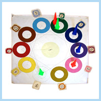 ARENA / Maße: 2,5 x 2,5 m / Vinylplane, bedruckt / Preis: € 285,- Auf der Arena wird addiert, subtrahiert, dividert und multipliziert, ein mal eins gegangen, gehüpft, gelaufen. Es werden Rechenspiele erfunden, verschiedenste Spiele gespielt, mit Bällen, Spieltieren und anderem Montessorimaterial kombiniert. Es werden neue Spiele erfunden. Es regt Körper, Geist und Seele an! zurück